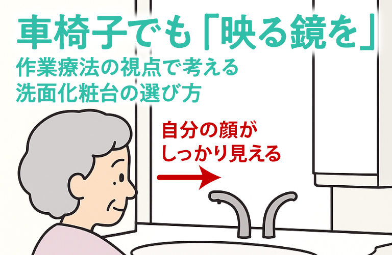 車椅子を利用する方にとって、「座った姿勢で鏡に顔が映るかどうか」は、日常生活動作(ADL)の自立度や心理的な安心感に大きく影響します。本記事では、作業療法の視点から、車椅子ユーザーに最適な洗面化粧台の選び方、特に鏡の重要性について詳しく解説します。